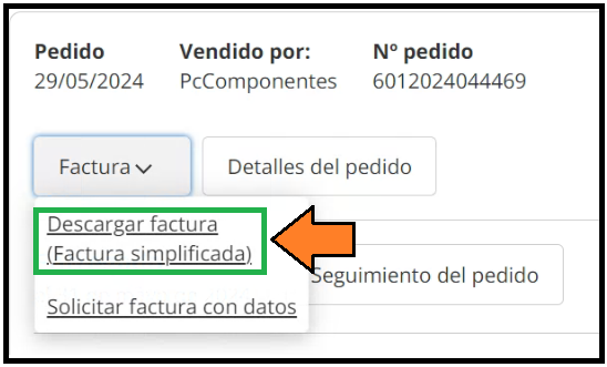 - Desde “Meus pedidos” pode descarregá-la como proforma.